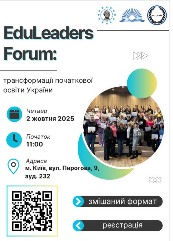 2 жовтня 2025 року викладачі кафедри дошкільної та початкової освіти та студенти спеціальності 013 Початкова освіта НУЧК імені Т.Г. Шевченка долучилися до участі в «EduLeaders Forum: трансформації початкової освіти України», який об’єднав науковців та практиків з різних регіонів України. Захід був організований нашими колегами з кафедри початкової освіти та інноваційної педагогіки УДУ імені Михайла Драгоманова в межах Тижня початкової освіти і став потужною платформою для професійного діалогу про майбутнє спеціальності.
