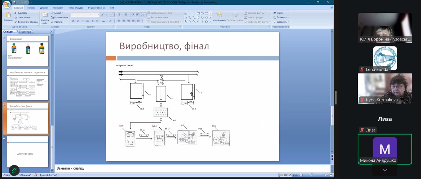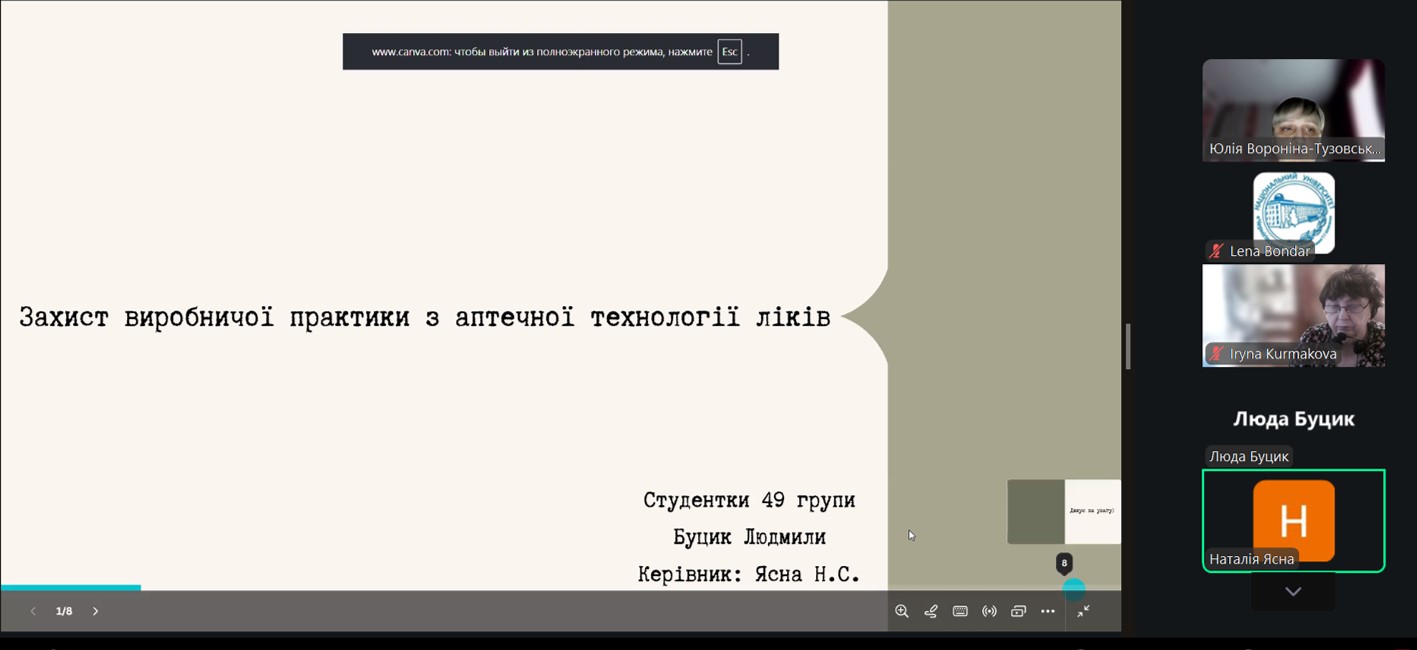 15 – 16 грудня 2025 року відбувся захист навчальної та виробничої практик здобувачів вищої освіти за спеціальністю 226 Фармація, промислова фармація. Захист показав, що всі студенти набули професійних навичок і впевнено орієнтуються у питаннях аптечної та заводської технології ліків. Програма та зміст практик, які розроблені к.фарм.н. Наталією Ясною та к.фарм.н. Юлією Вороніною-Тузовських, дозволяють набути професійних компетентностей необхідних майбутнім фармацевтам.
