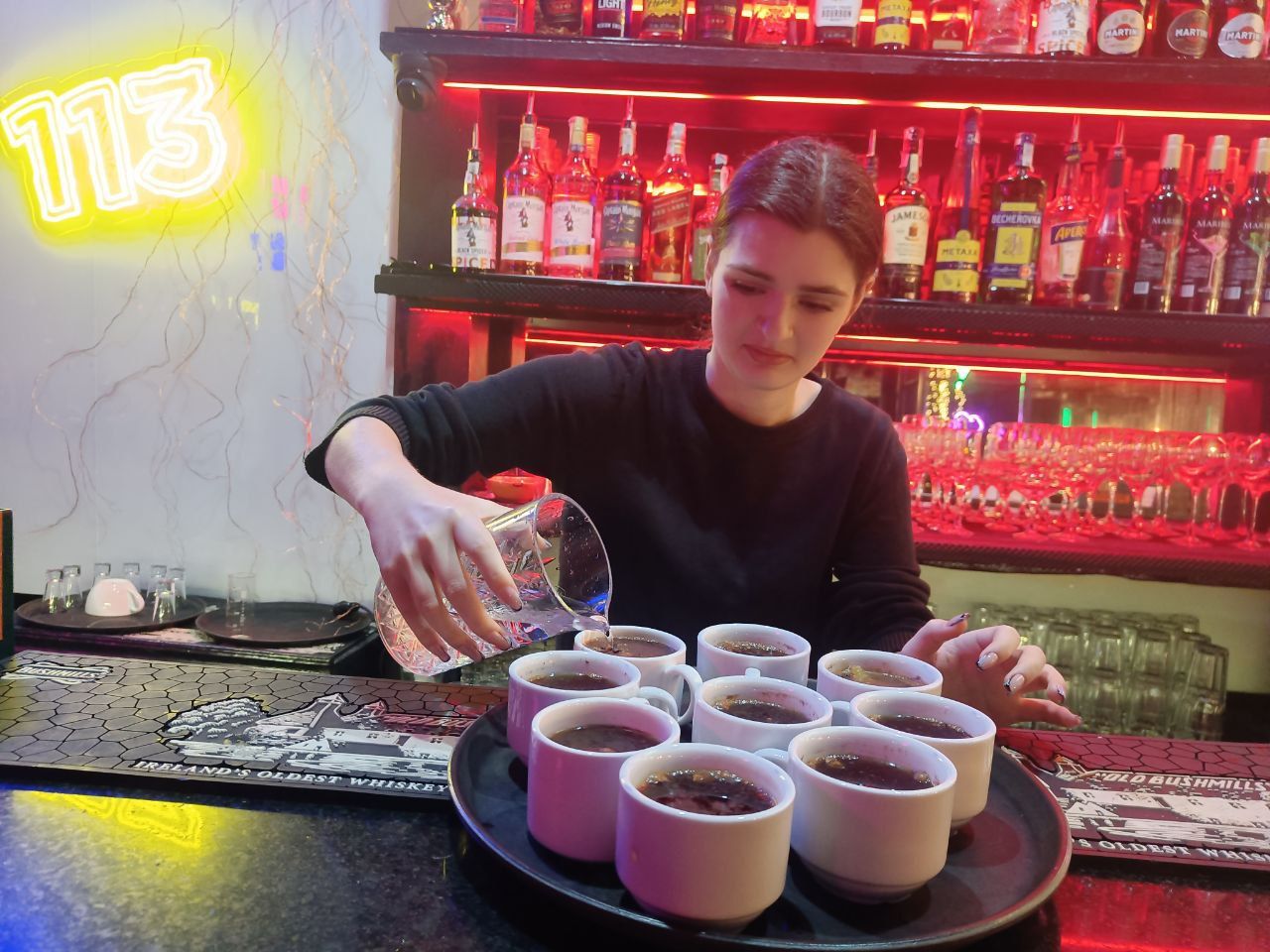 Навчання, яке виходить за межі аудиторій, – саме так 18 грудня 2025 року пройшла лабораторна робота з дисципліни «Технологія напоїв і коктейлів» для студентів спеціальності «Готельно-ресторанна справа». Заняття на тему «Особливості виробництва гарячих алкогольних напоїв» відбулося у реально діючому закладі – Party Bar 113. Під час заняття здобувачі освіти працювали з професійним барним обладнанням та на практиці опановували технологію приготування популярних гарячих напоїв, зокрема глінтвейну, грогу та кавового пуншу. Такий формат навчання дозволив студентам максимально наблизити освітній процес до реальних умов роботи у сфері гостинності.