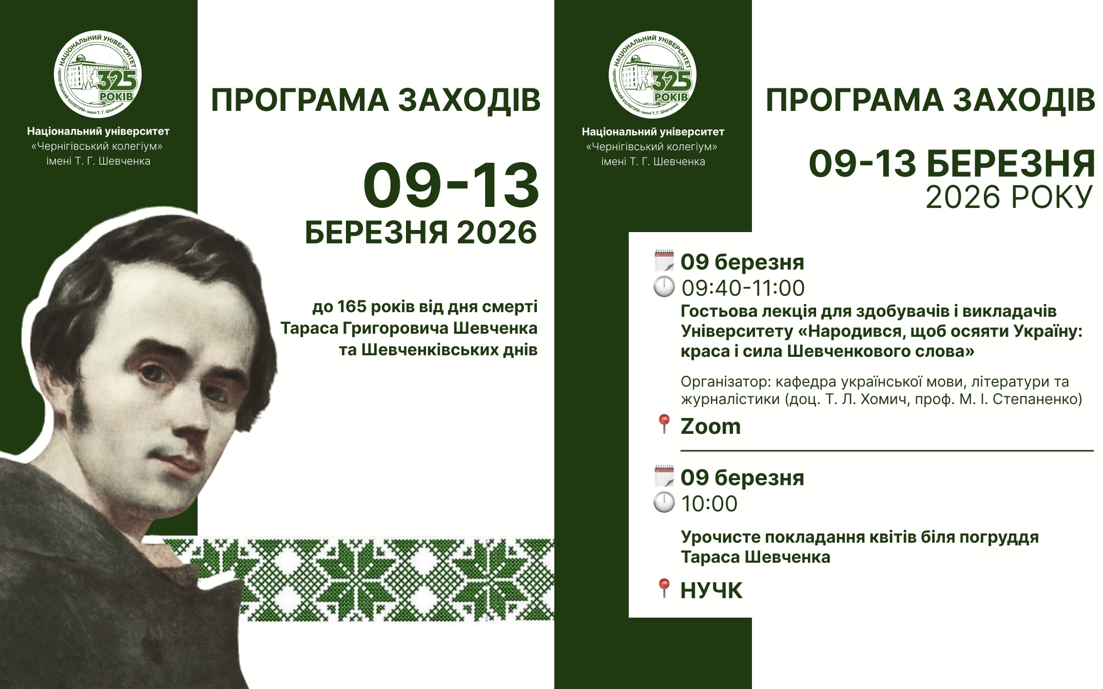 Для нашої університетської родини це особливий час. Адже ми маємо честь носити ім’я поета, чия думка й досі формує українську свідомість. Тому традиційно розпочинаємо Шевченківський тиждень — серію подій, присвячених постаті, творчості та ідеям Кобзаря.