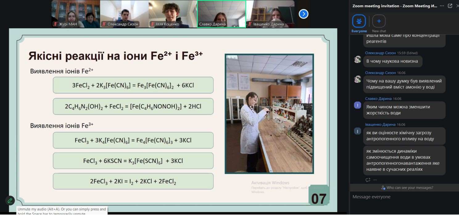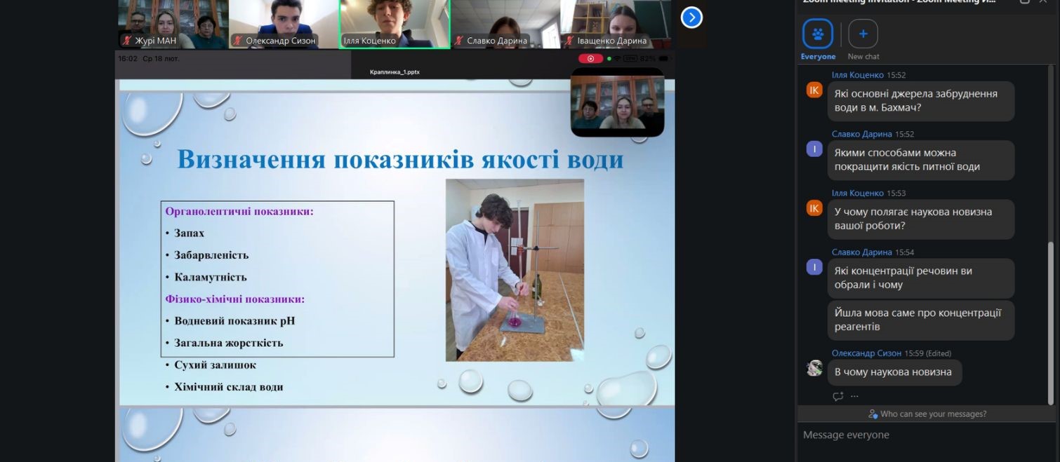 Більшість робіт виконано при консультативної підтримці викладачів кафедри хімії, технологій та фармації, на якій дослідження якості природної води є однією з провідних наукових тематик.