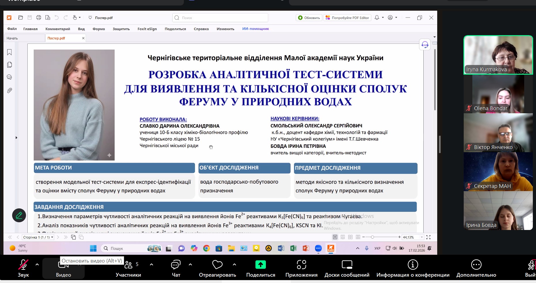 17 та 18 лютого учні - члени Чернігівського регіонального відділення МАН захищали роботи по секціям: