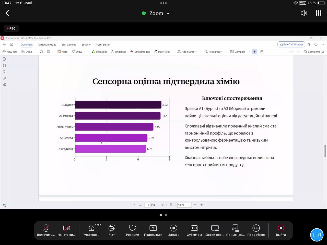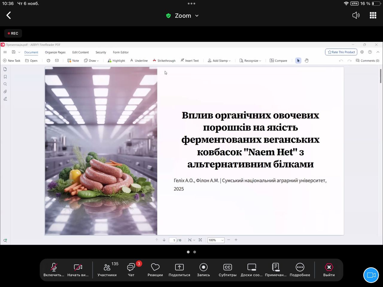 Рішення проблеми було представлено на ІІІ міжнародній науково-практичній конференції молодих вчених "Інноваційні технології розвитку харчових виробництв та ресторанної індустрії: наукові пошуки молоді", яка проходила у Державному біотехнологічному університеті, і де Андрій Філон виступив спікером.
