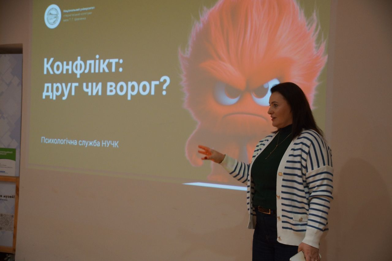 Нещодавно студенти НУЧКу взяли участь у тренінгу “Конфлікт: друг чи ворог?”, який організувала психологічна служба університету за підтримки відділу з питань молодіжної політики та іміджевої діяльності Під час зустрічі говорили про те, що таке конфлікт насправді: чому він виникає, яким буває, як розвивається та що можна зробити на кожному етапі, аби не поглиблювати суперечність Студенти також спробували техніку “я–повідомлень”, яка допомагає спокійно висловлювати свої почуття й потреби, не зачіпаючи співрозмовника. А практична частина дала можливість “прожити” конфлікт у безпечних умовах та побачити, як працюють різні стратегії взаємодії Разом із фахівцями психологічної служби учасники шукали способи, як екологічно входити в непрості розмови, краще розуміти одне одного та виходити з конфліктів без зайвих емоційних втрат Адже кожен конструктивно вирішений конфлікт — це не проблема, а крок до зрілості та злагодженої комунікації.