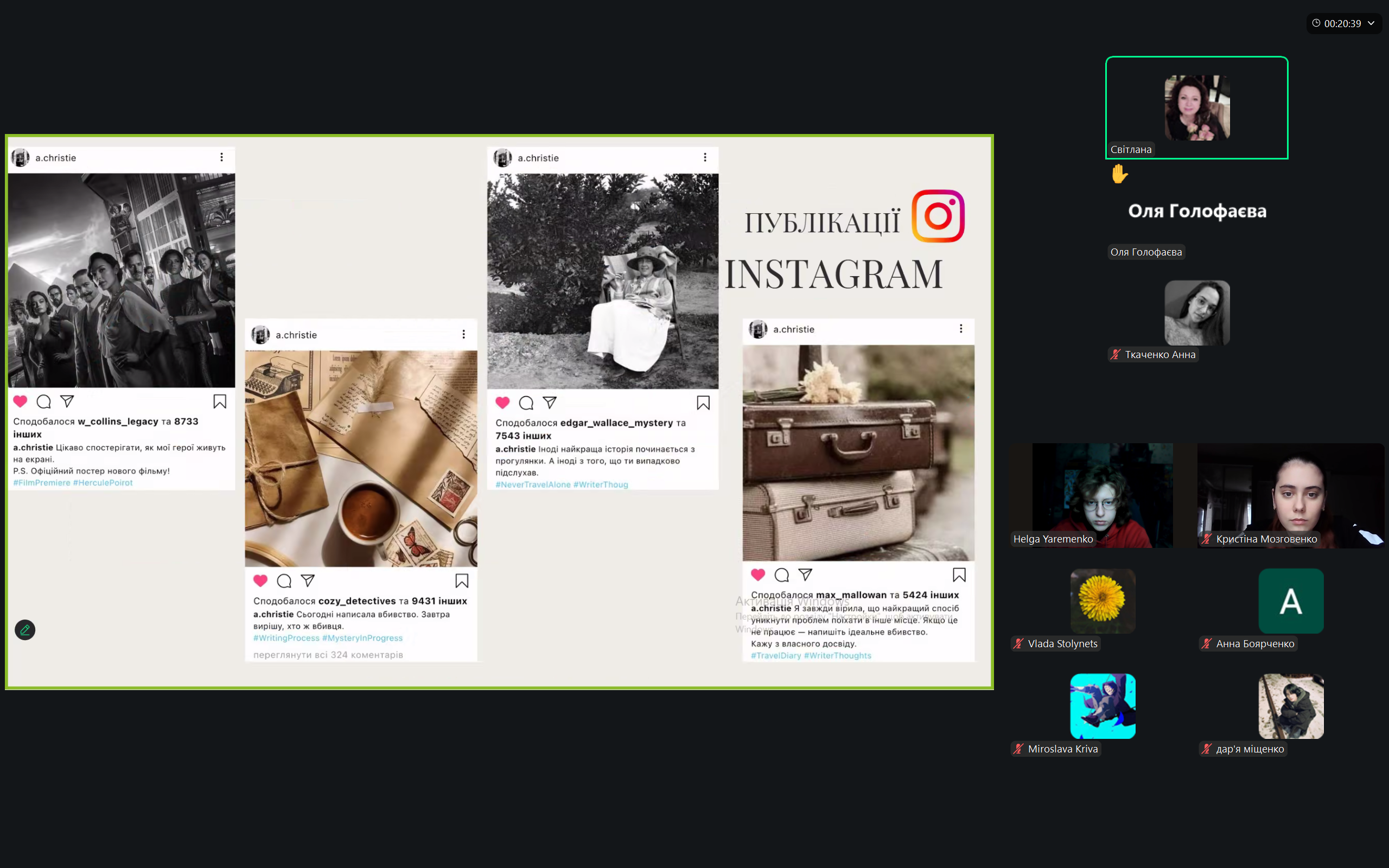 - Instagram-сторінка Агати Крісті — сучасне бачення онлайн-образу письменниці від Олі Голофаєвої, Дар’ї Міщенко та Ані Ткаченко.