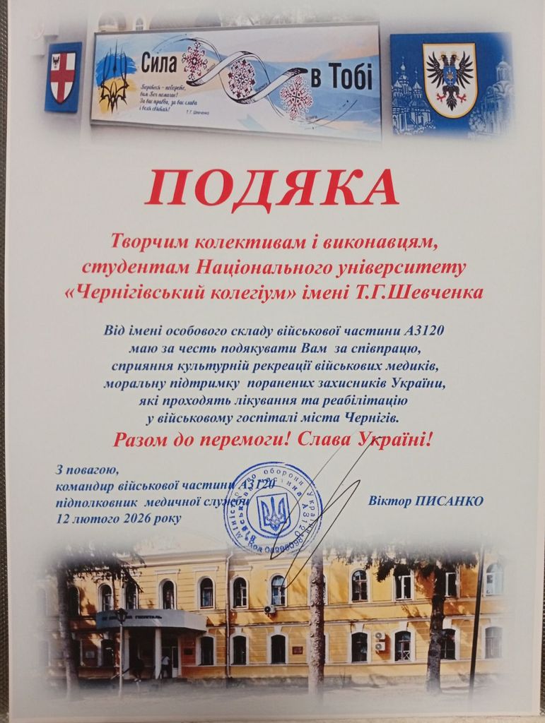 12 лютого студенти музичних спеціальностей факультету дошкільної, початкової освіти і мистецтв завітали до Чернігівського госпіталю: