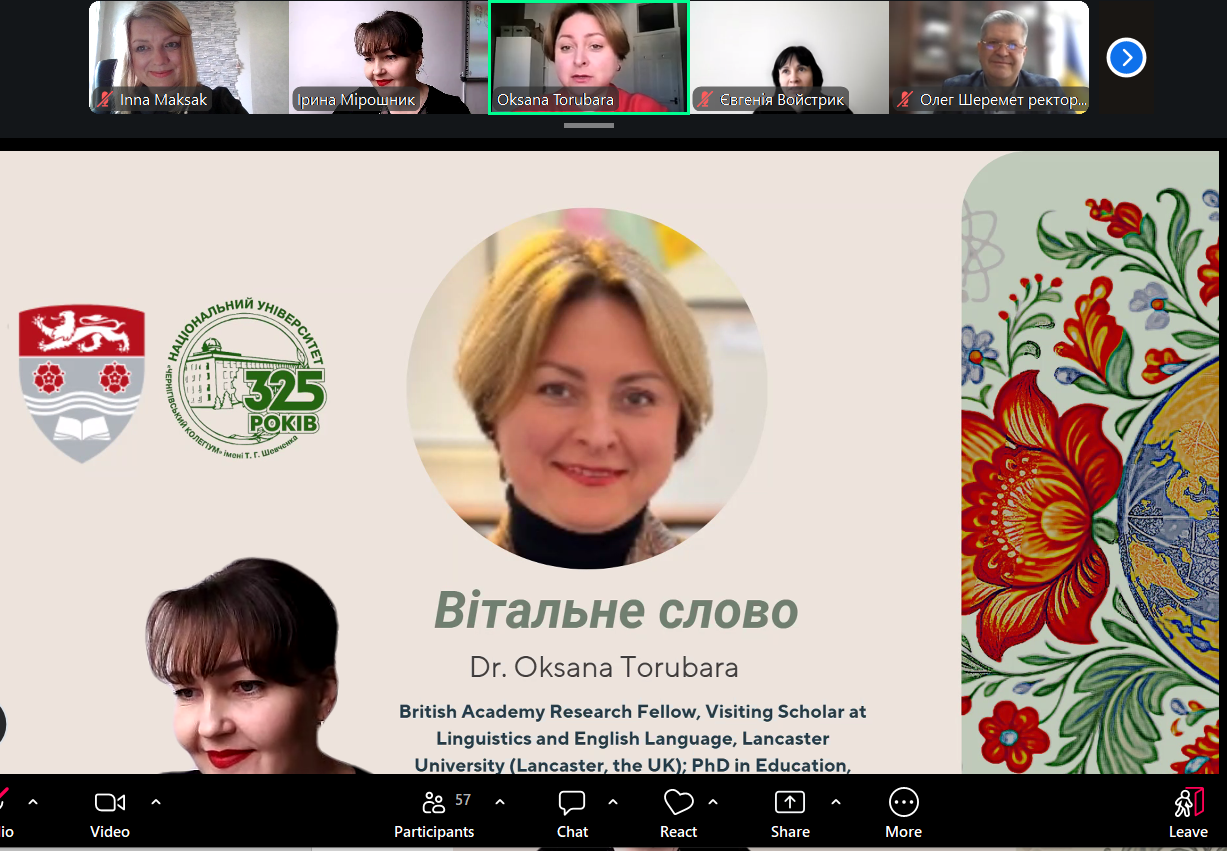 Dr. OKSANA TORUBARA, British Academy Research Fellow, Visiting Scholar at Linguistics and English Language, Lancaster University (Lancaster, the UK); PhD in Education, Associate Professor at the Department of Foreign Languages, T.H. Shevchenko National University “Chernihiv Colehium” (Chernihiv, Ukraine),