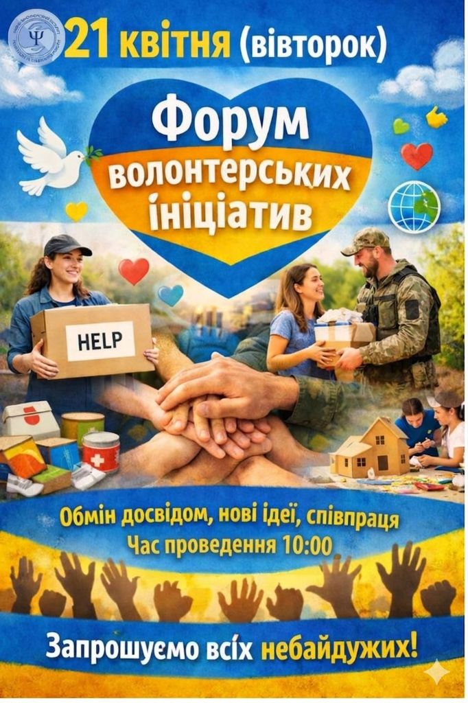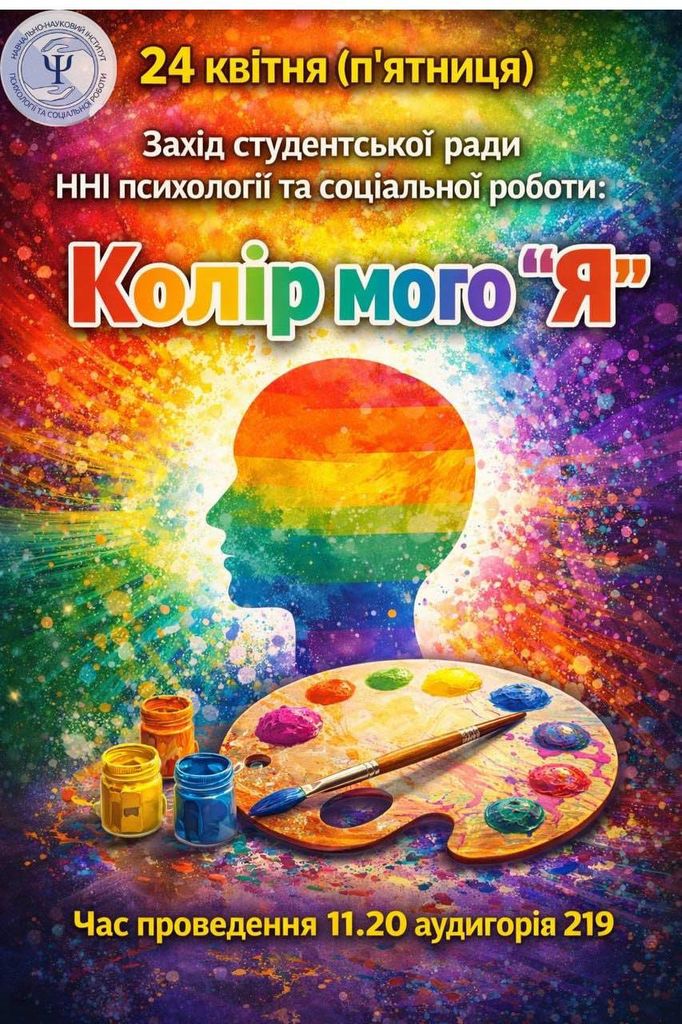 З 20 квітня по 24 квітня у Навчально-науковому інституті психології та соціальної роботи проходитиме тиждень інституту. Зустрічі, тренінги та яскраві заходи в он-лайн та оф-лайн форматах будуть цікавими для всіх. Запрошуємо до участі всіх бажаючих. Чекаємо на вас!