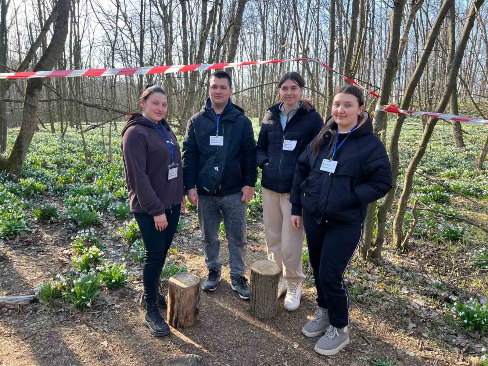 2. Наступного дня, зранку група вирушила на екскурсію в лісовий масив національного парку, де побачили стадо диких косуль, а також багато різних видів дерев. Під час експедиційного виходу учасники навчалися працювати з картами, визначати, орієнтуватися на місцевості та описували моніторингові ділянки з підсніжником звичайним, видом, які занесений до Червоної книги України та охороняється у «Холодному яру».